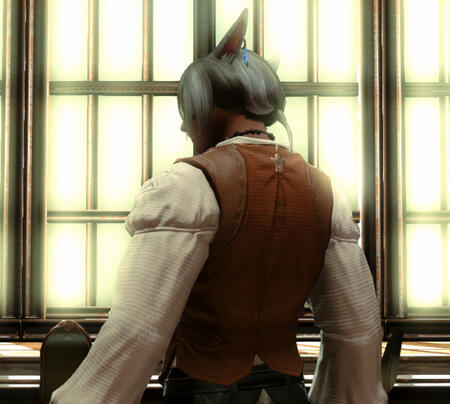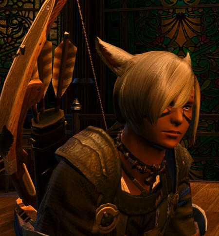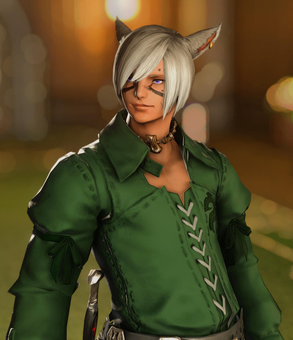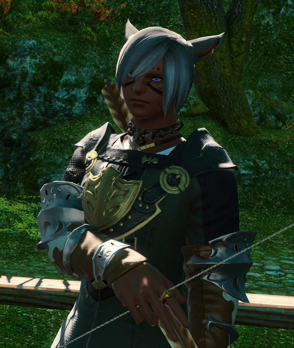 Hitting the Road: He has recently stepped foot out of the Twelveswood for the first time, and is currently located in Limsa Lominsa / La Noscea. He can often be found in the company of Zantetsu Kiba, an axe-wielding Raen man wearing armor of Thavnairian make. If encountered alone, he would most likely appear to be quietly awed, curious, or visibly uncertain/wary and out of his depth.
